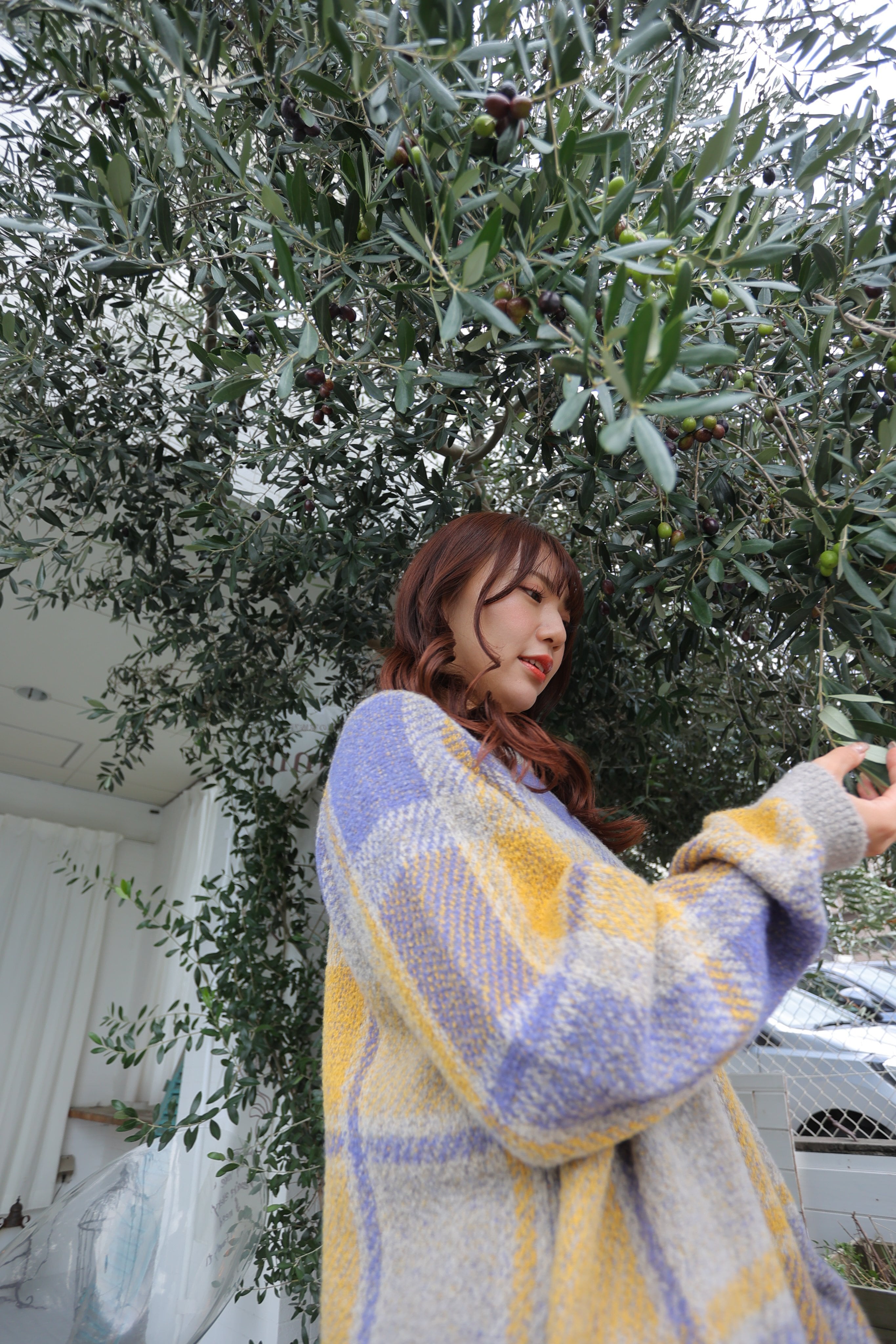 インパクトのあるマドラスチェックの格子柄を、スポンディッシュなトライスピンブークレ糸で表現。ボリューム感のある4色ジャカード編み。鮮やかな配色がコーディネートに華を添えます。手持ちのワードローブに馴染みつつ、個性的な一着として存在感を発揮。
