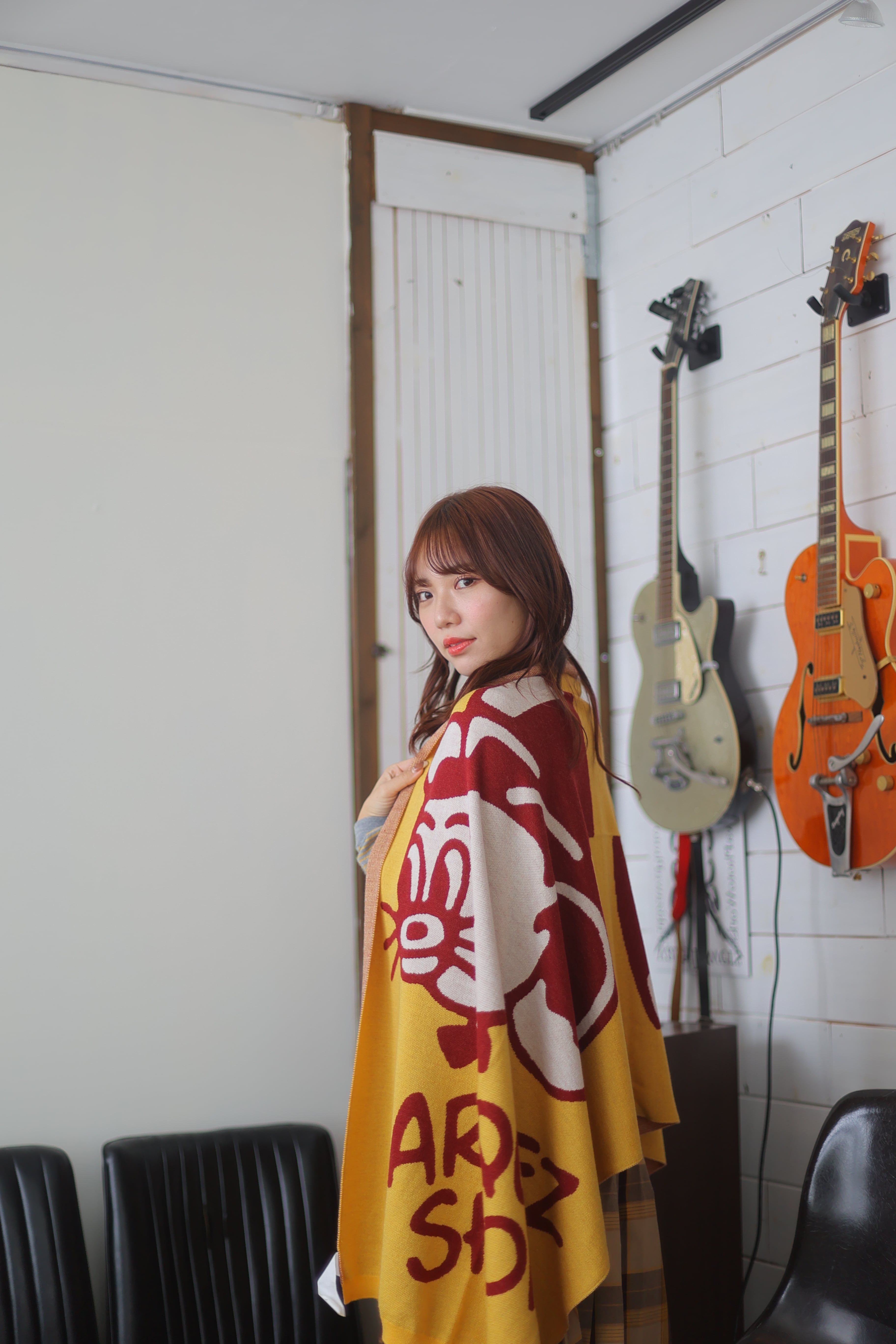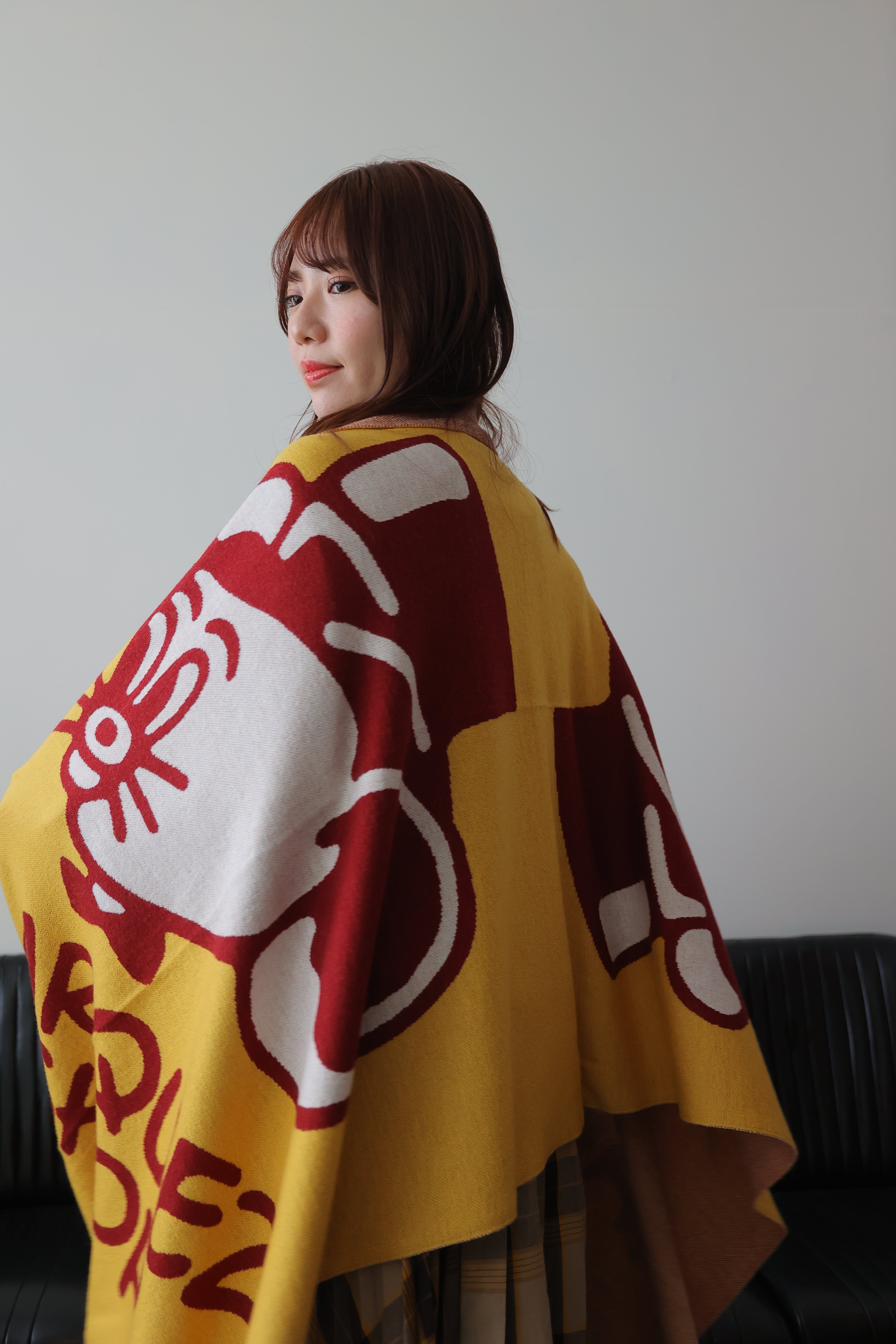 今回のコラボでは、もちろん看板キャラクター「ジェリー・マルケス」をフィーチャー。可能な限り大きく、可能な限りポップに。もちろん、toiroらしく「使い勝手は最大限」ということで、大判ストールが爆誕。