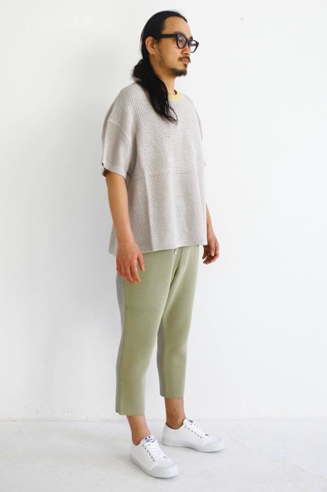 しっかりと目の詰まった、ニットのイージーパンツ。ゆったりとしたシルエットに、9分丈のクロップド。高いデザイン性に、スポーティな配色を身にまとった、他にはないユニークなアイテムは、春夏コーデに重宝するはず。こちらの商品カラーは、ピクルス×グレージュとなります。