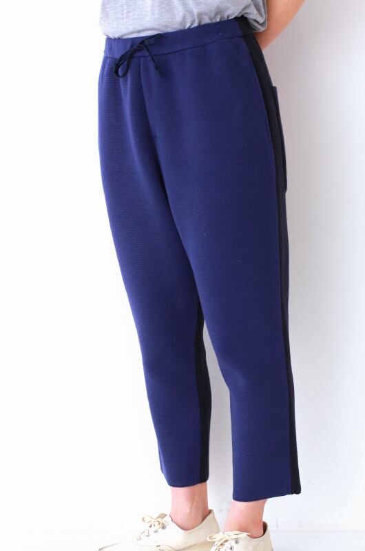 しっかりと目の詰まった、ニットのイージーパンツ。ゆったりとしたシルエットに、9分丈のクロップド。高いデザイン性に、スポーティな配色を身にまとった、他にはないユニークなアイテムは、春夏コーデに重宝するはず。こちらの商品カラーは、ブルー×ネイビーとなります。