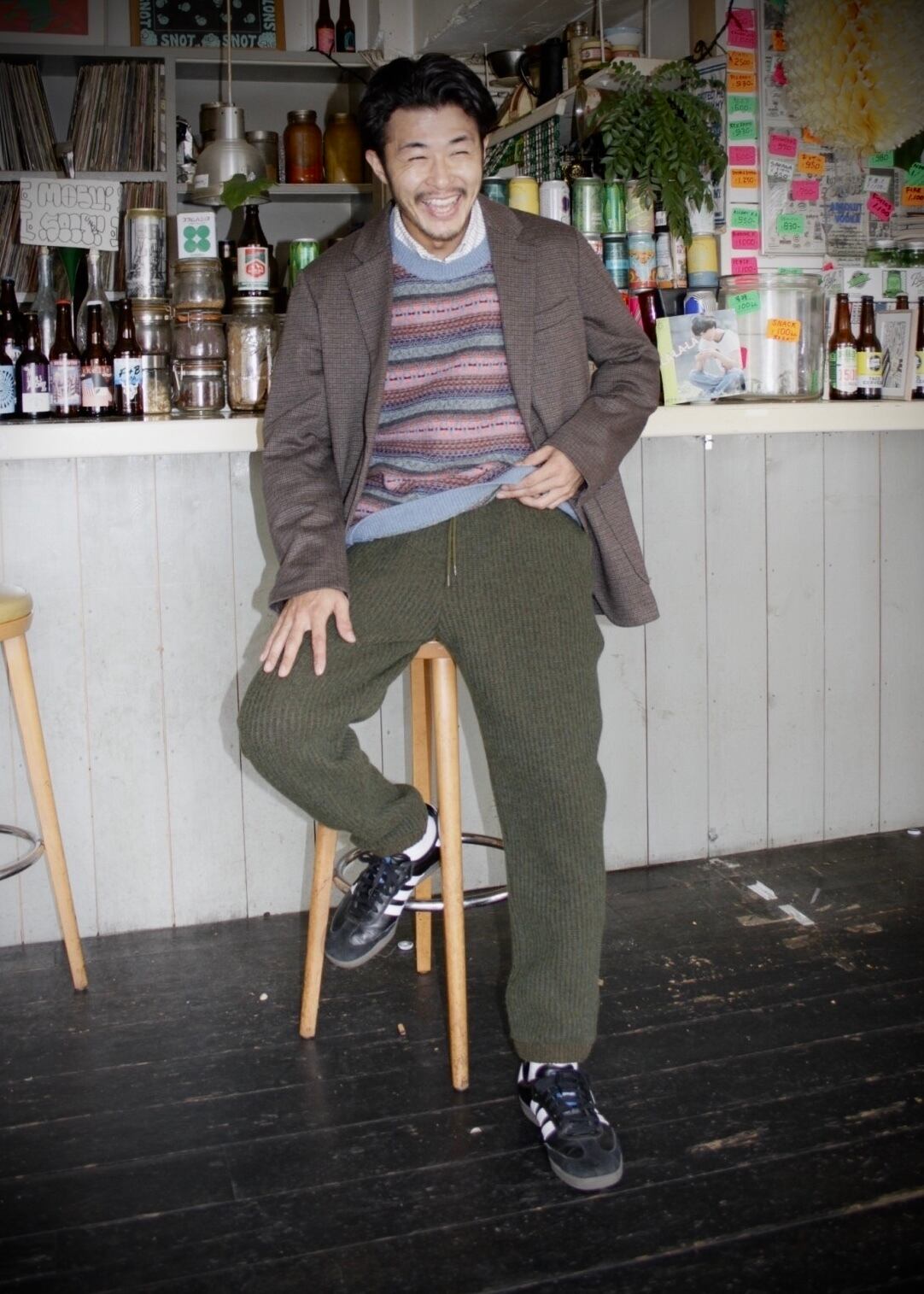 同柄の「エディターズPO.」と「エディターズBL.」と合わせて、モダンなセットアップでもキマります。スエットではなく、ちょっと差のつくニットパンツはいかがですか。ヒートテックにはない、ウール100%の温かさあり〼。