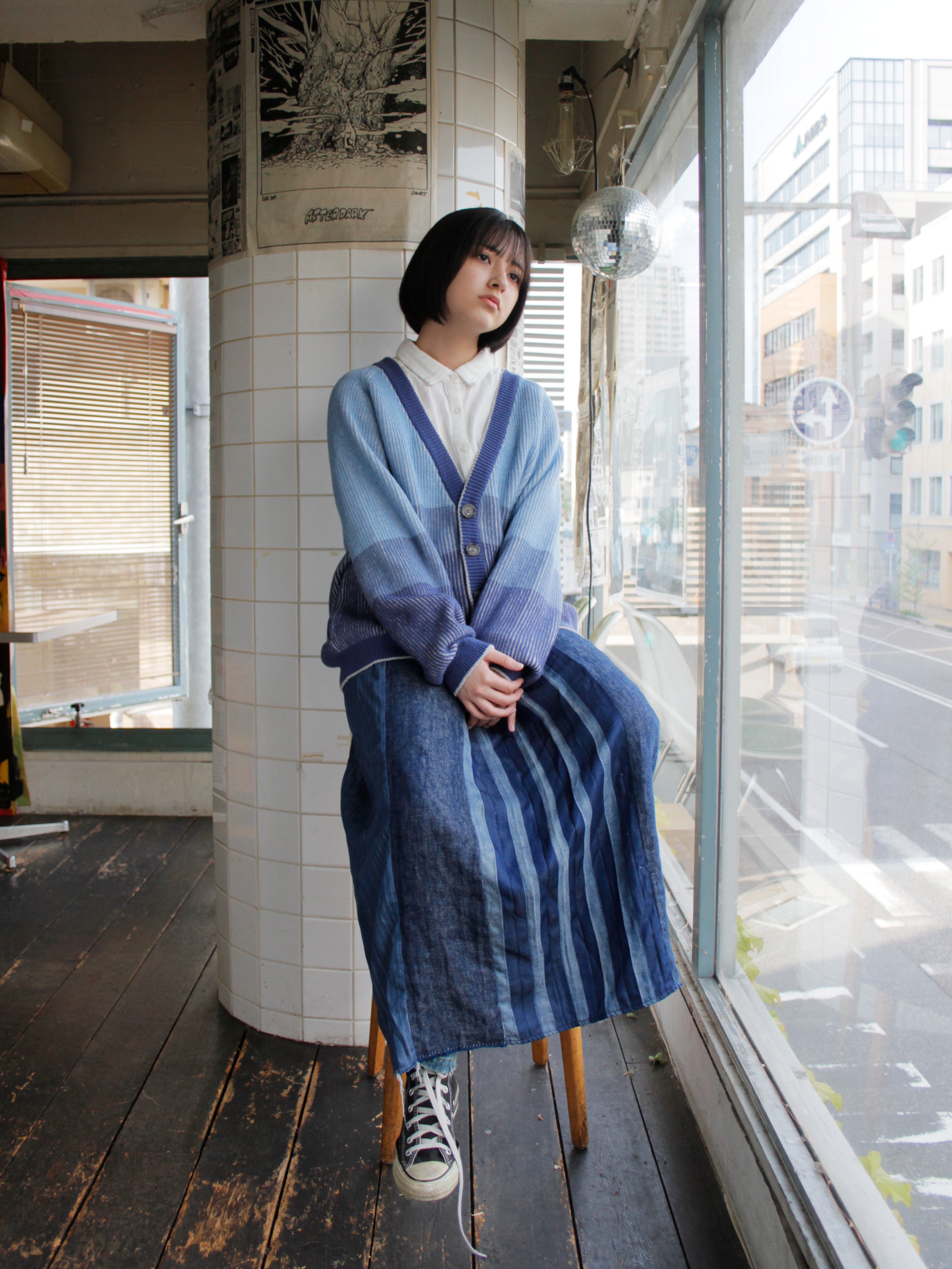 ふっくらとカサ高ながら、やわからく、軽量で堅牢度の高いウールを使用。手に取った際、見た目より軽くて驚かれるはず。ポケットは、サイドスリットで編み地の邪魔をしません。今年もtoiroらしいカーデが完成しました。