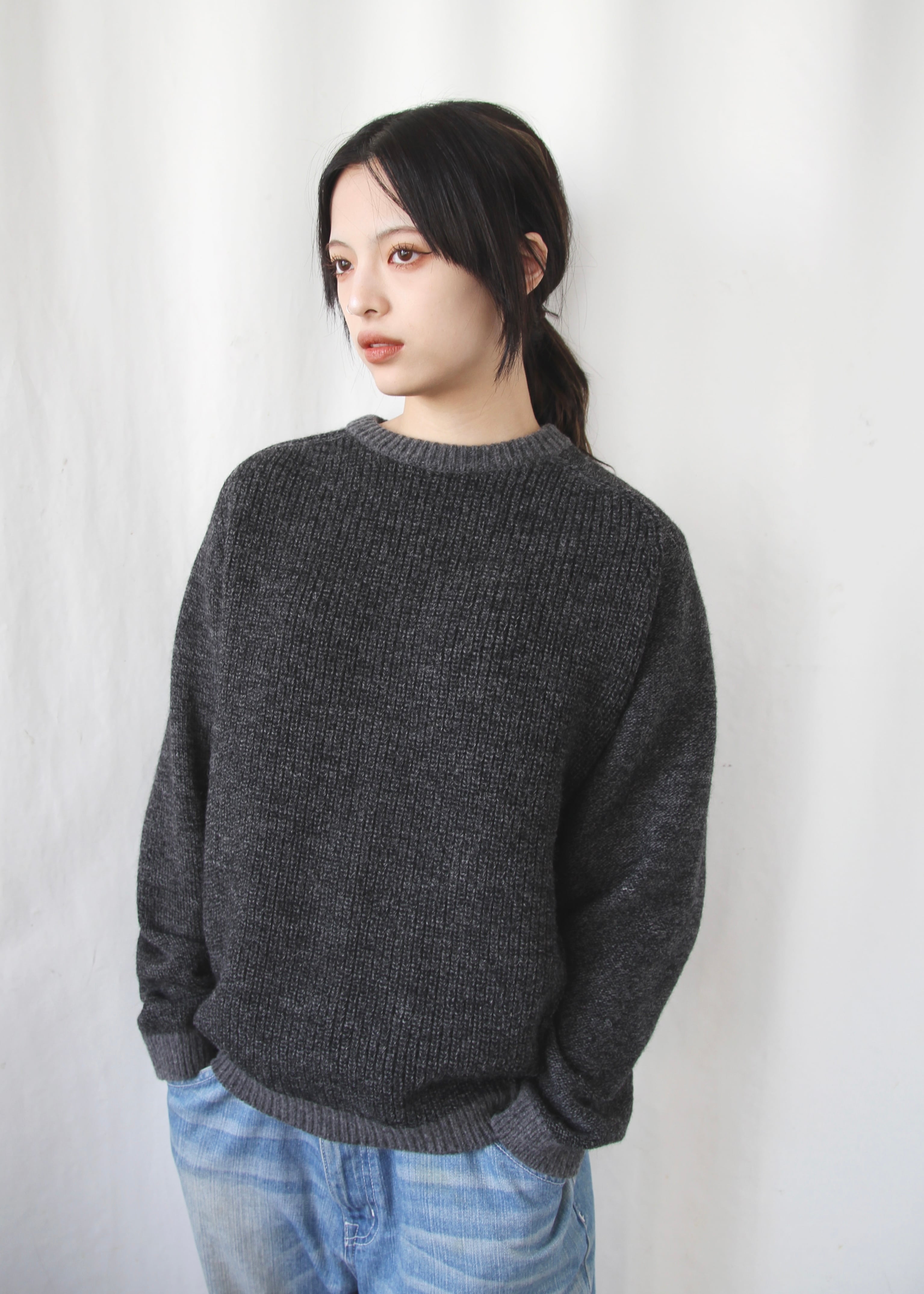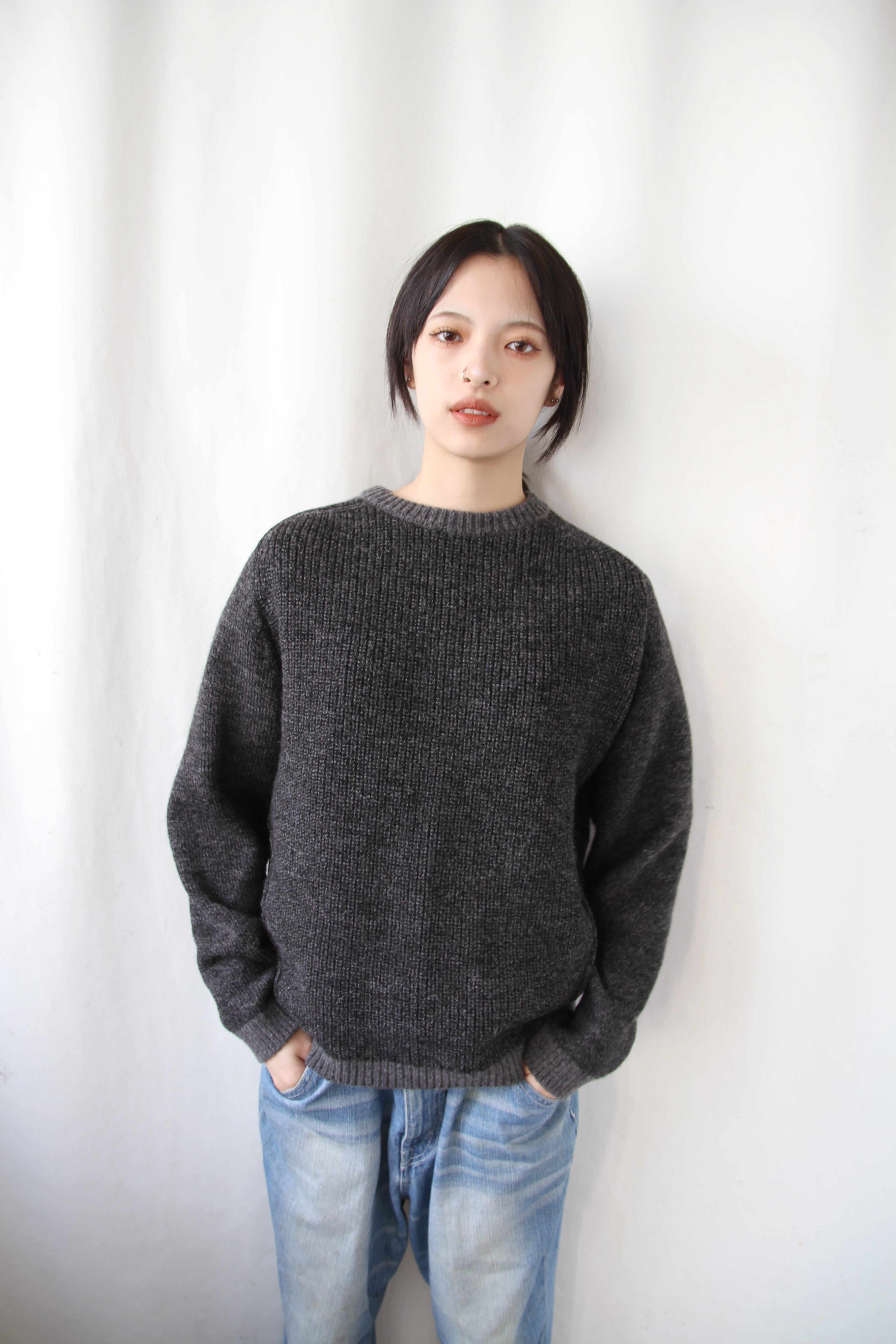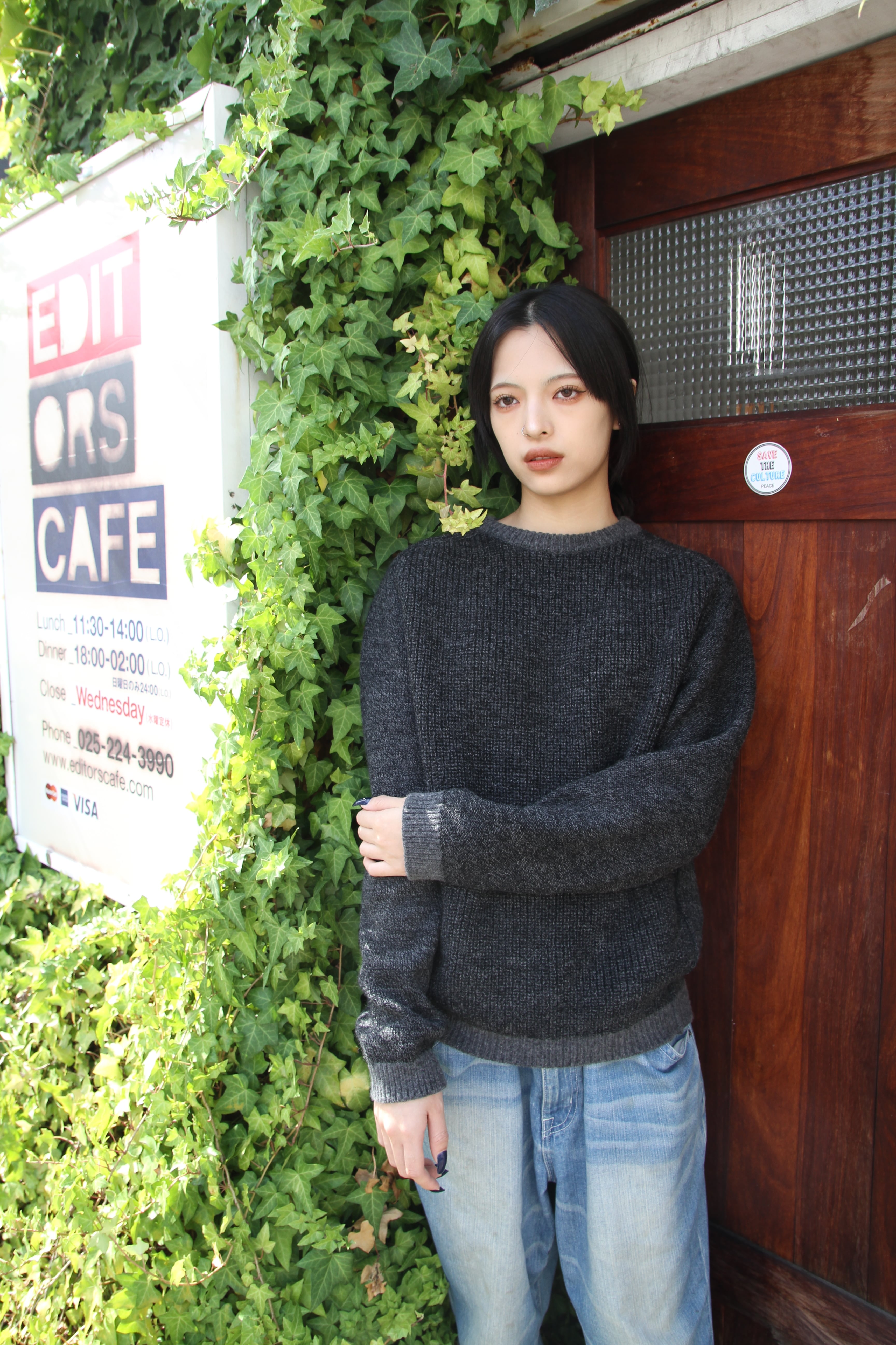 本体は、100%ウール。薄くもなく、厚くもないミドルゲージの編み地。英国羊毛のざらりとしたラフな質感でありながら、肌ざわりは柔らかくでスポンディッシュ。コーデの邪魔をしないスモーキーなカラー展開は「ブラウン」「グレー」「チャコール」の3色。