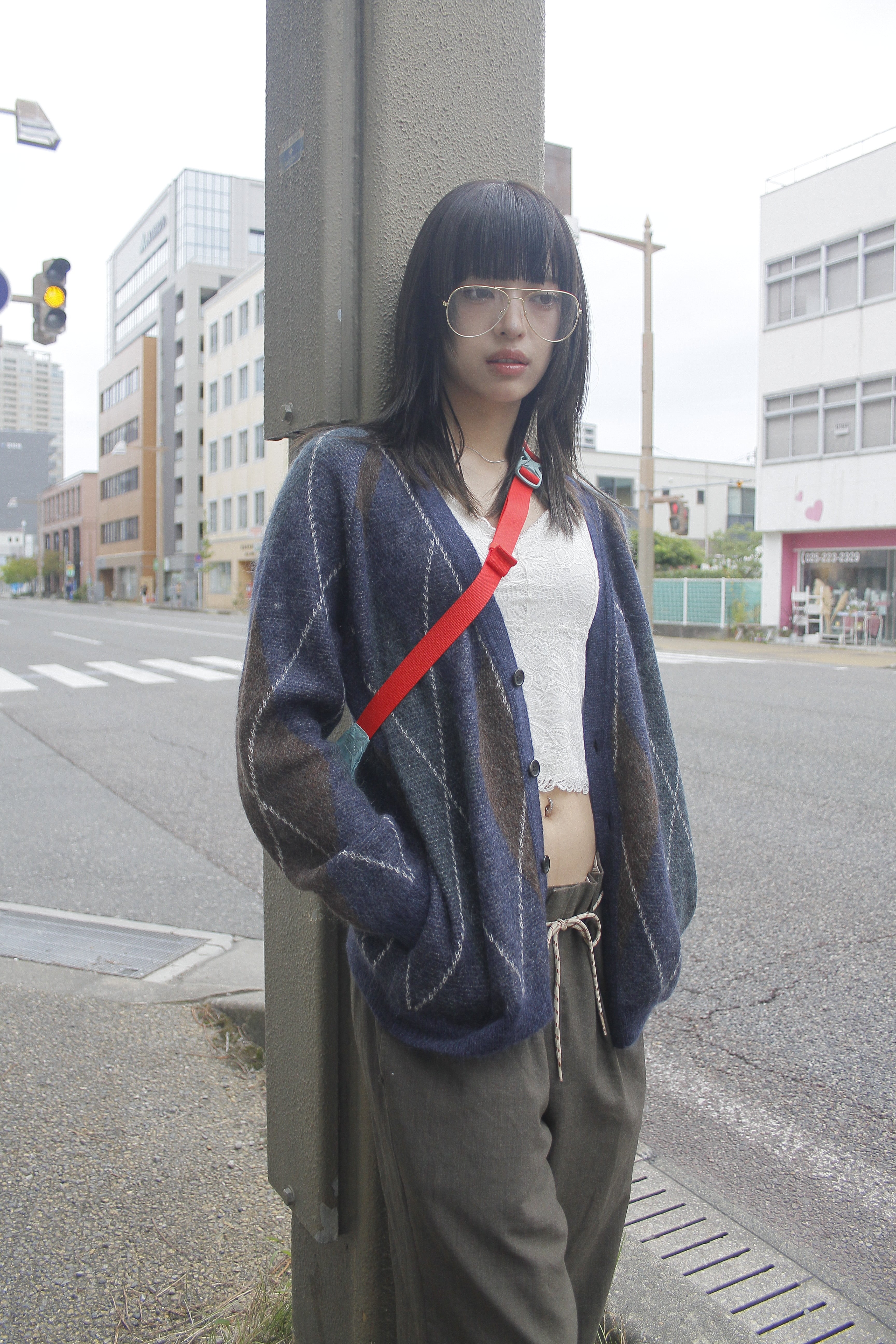 アーガイル・チェックは、元は1400年代にスコットランドのアーガイル地方で発祥し、連続するダイヤ模様と斜めに交差するラインから構成される編み物のパターン。1950年頃にニューヨークで、アーガイル柄のロングソックスが流行したことで世界中にヒット。ちょっと懐かしい雰囲気は、その印象かも知れません。1990年代前半に流行したグランジ・ロックから派生したストリート・ファッションでも、当時の古着にアーガイル柄が多かったこともあり、愛用するミュージシャンの姿が散見されます。
