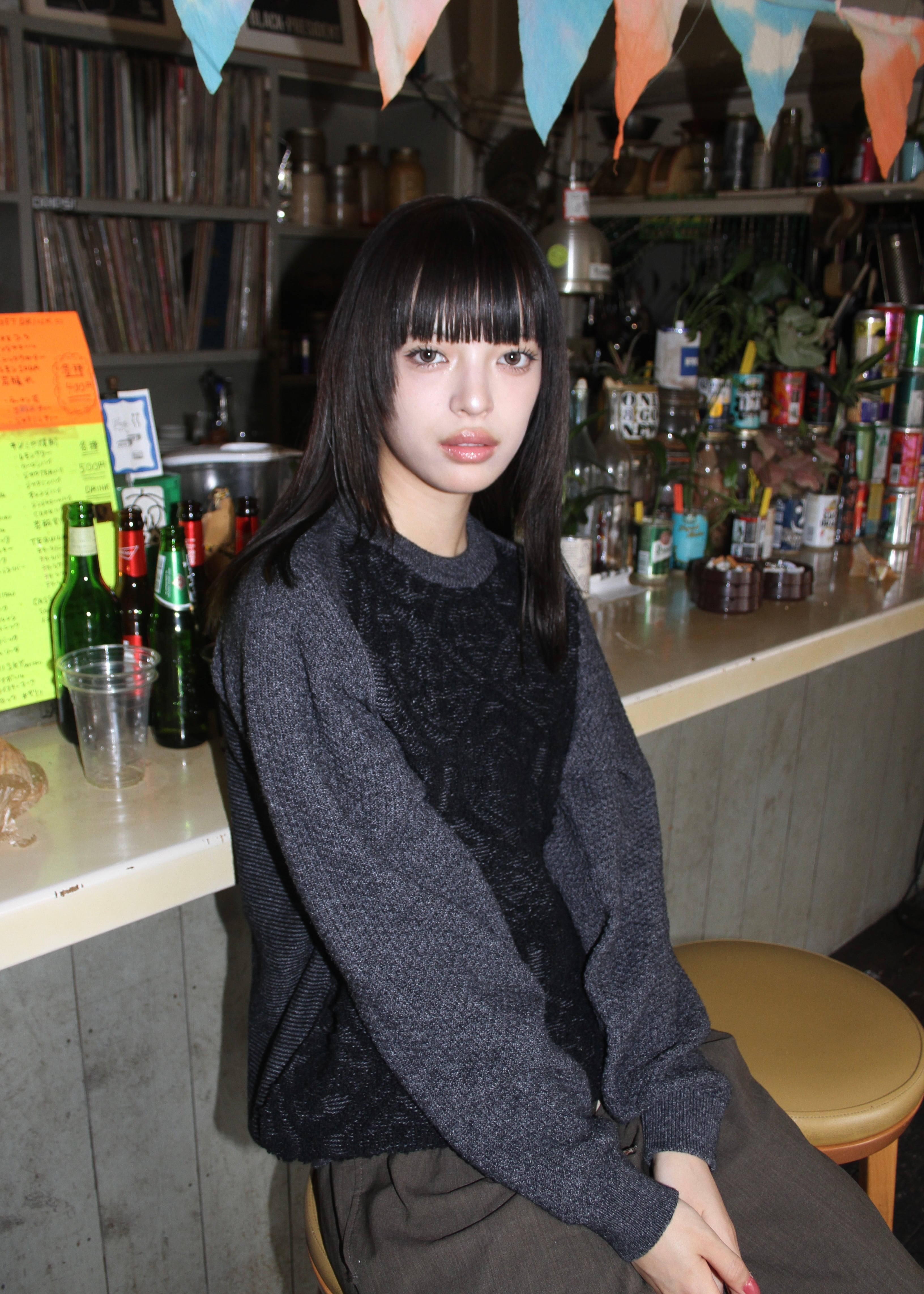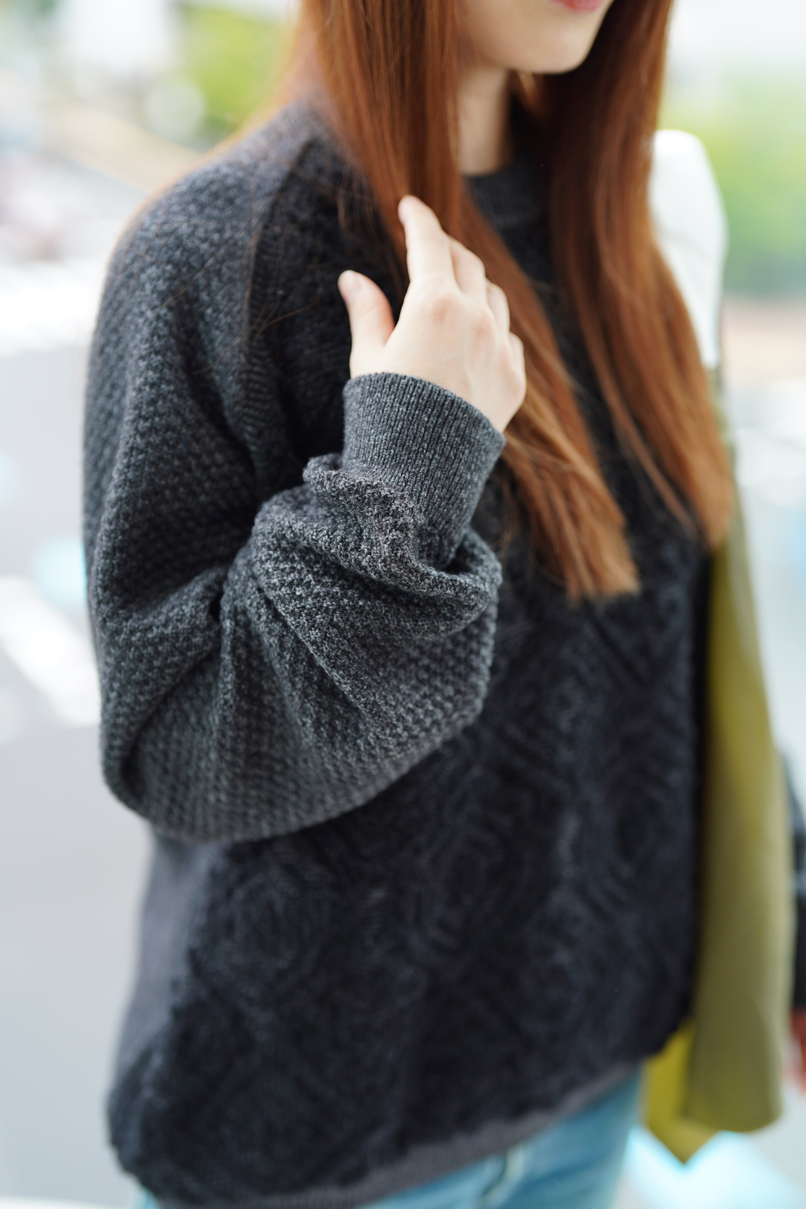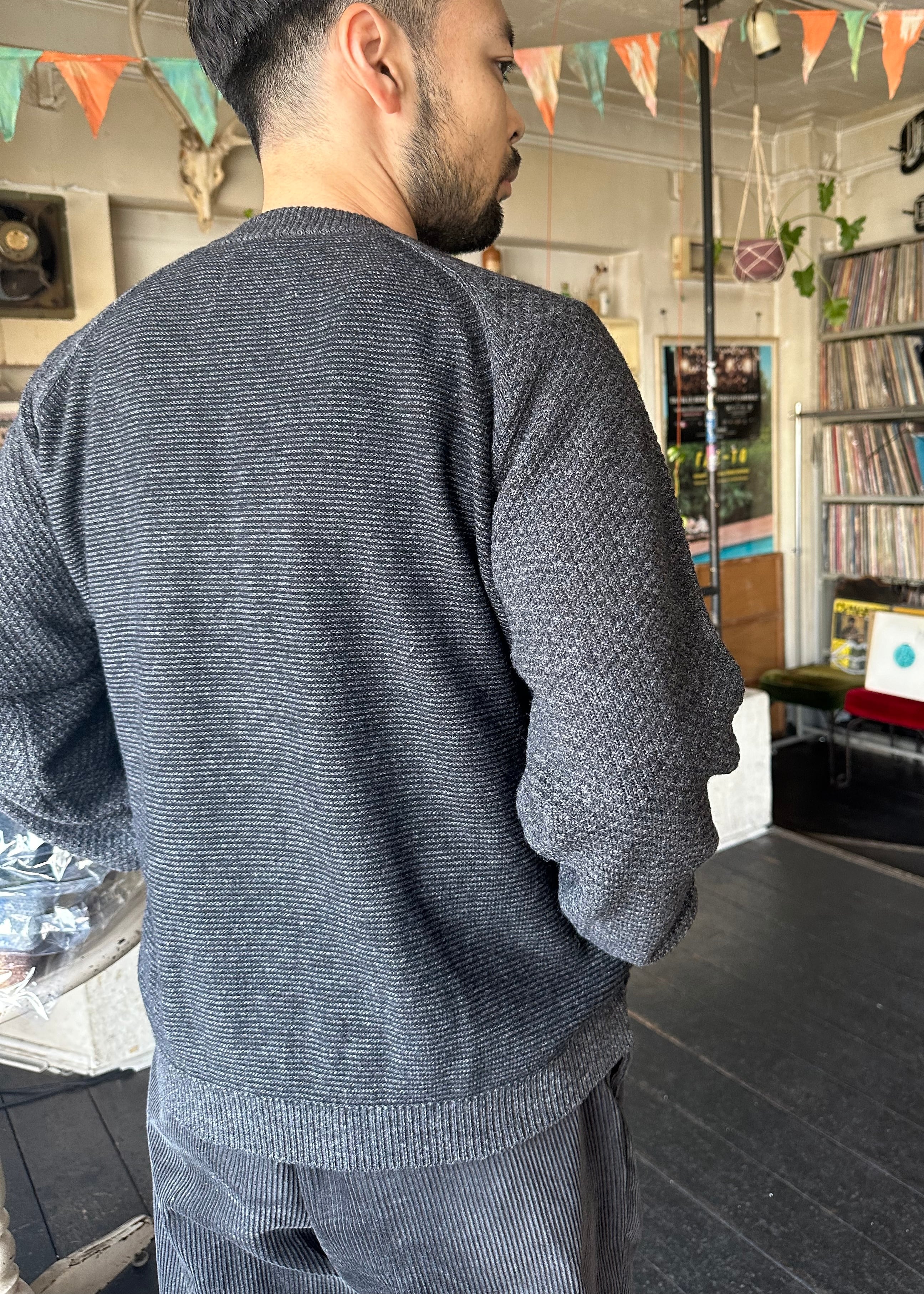 フロント、バック、袖、それぞれ異なる編み地。編み地が異なるので、見える角度によって異なる印象になるユニークなニット。手持ちのワードローブにすんなりと溶け込みながらも、誰かと同じコーデになることのない一着。