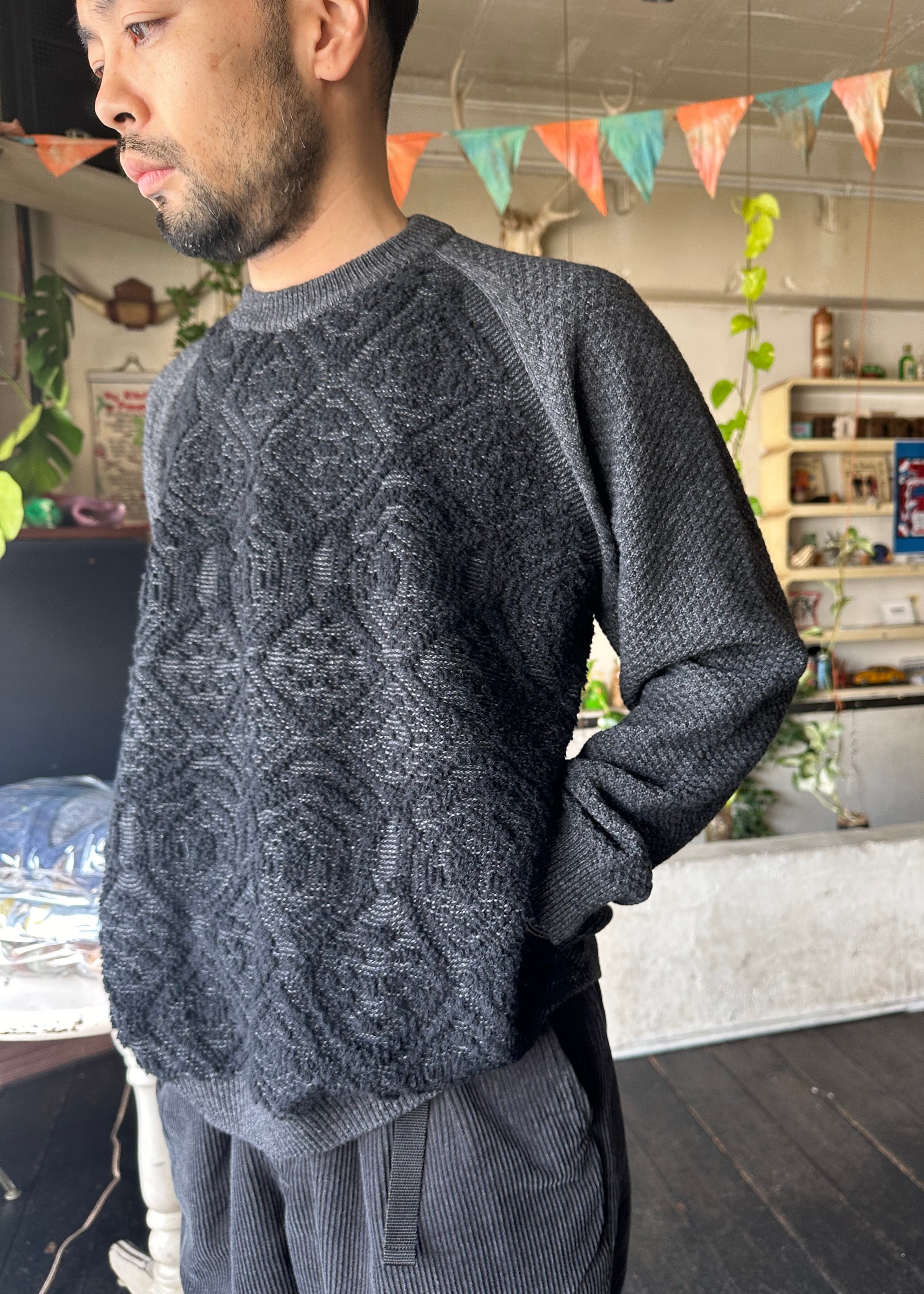 異文化が時間と人の手を経て「渾然一体に混じり合って生まれたもの」を想起します。このオリエンタルPO.は、異なる編み地が混じり合いながら生まれた異国情緒あふれるニット。